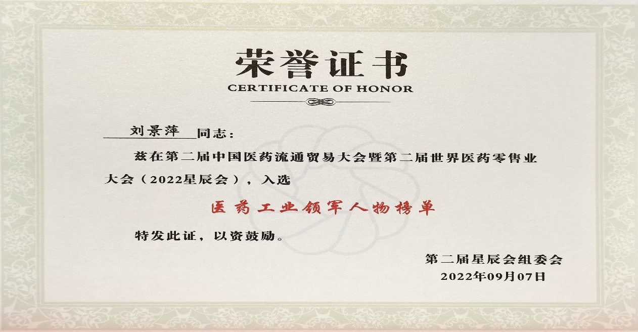 本次星辰会期间,伟德国际1946斩获颇丰,获得多项行业奖项及荣誉。在开幕式上,刘景萍董事长荣获“医药工业领军人物”称号。