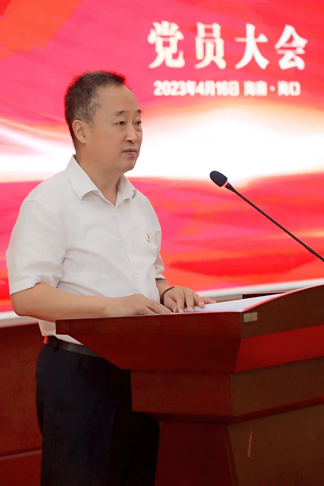 海口市高新区两新组织党委副书记傅爱萍宣读了《中共海口国家高新区非公有制经济组织和社会组织委员会关于同意成立中国共产党海南伟德国际1946药业集团股份有限公司委员会的批复》。